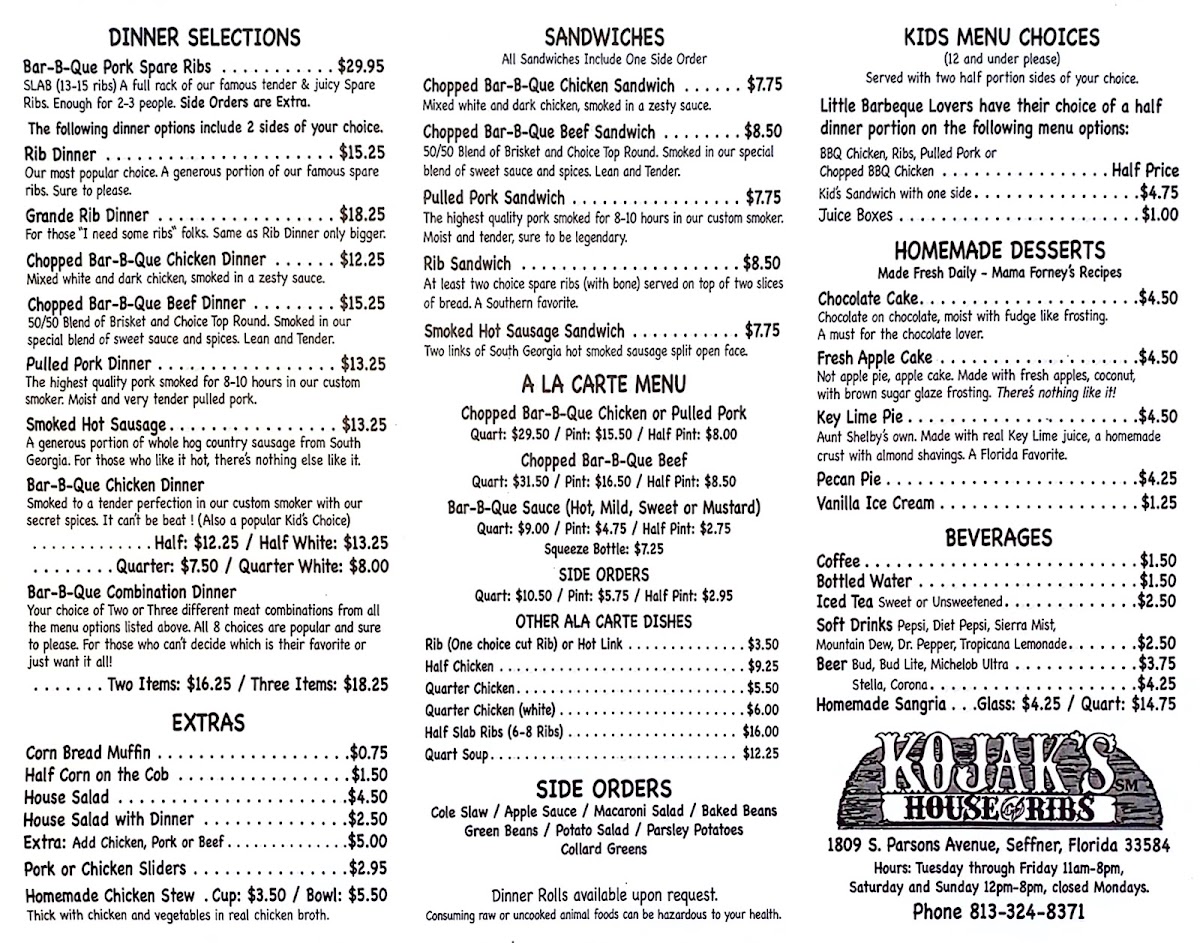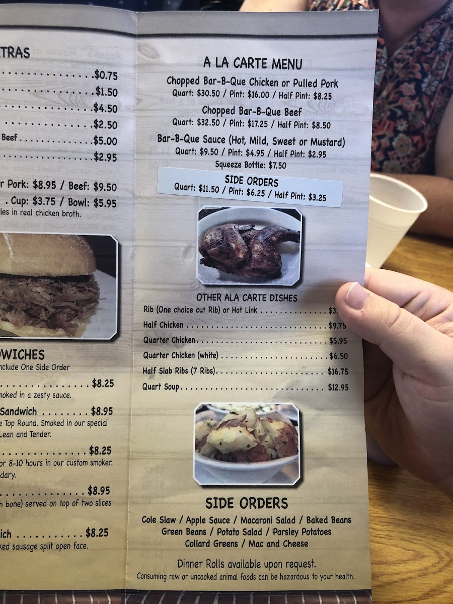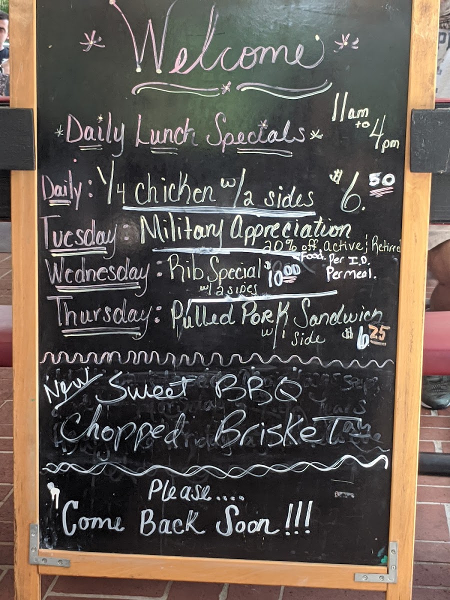 Smoked to a tender perfection in our custom smoker with our secret spices it can't be beat (also a popular kid's choice). Includes two sides of your choice.