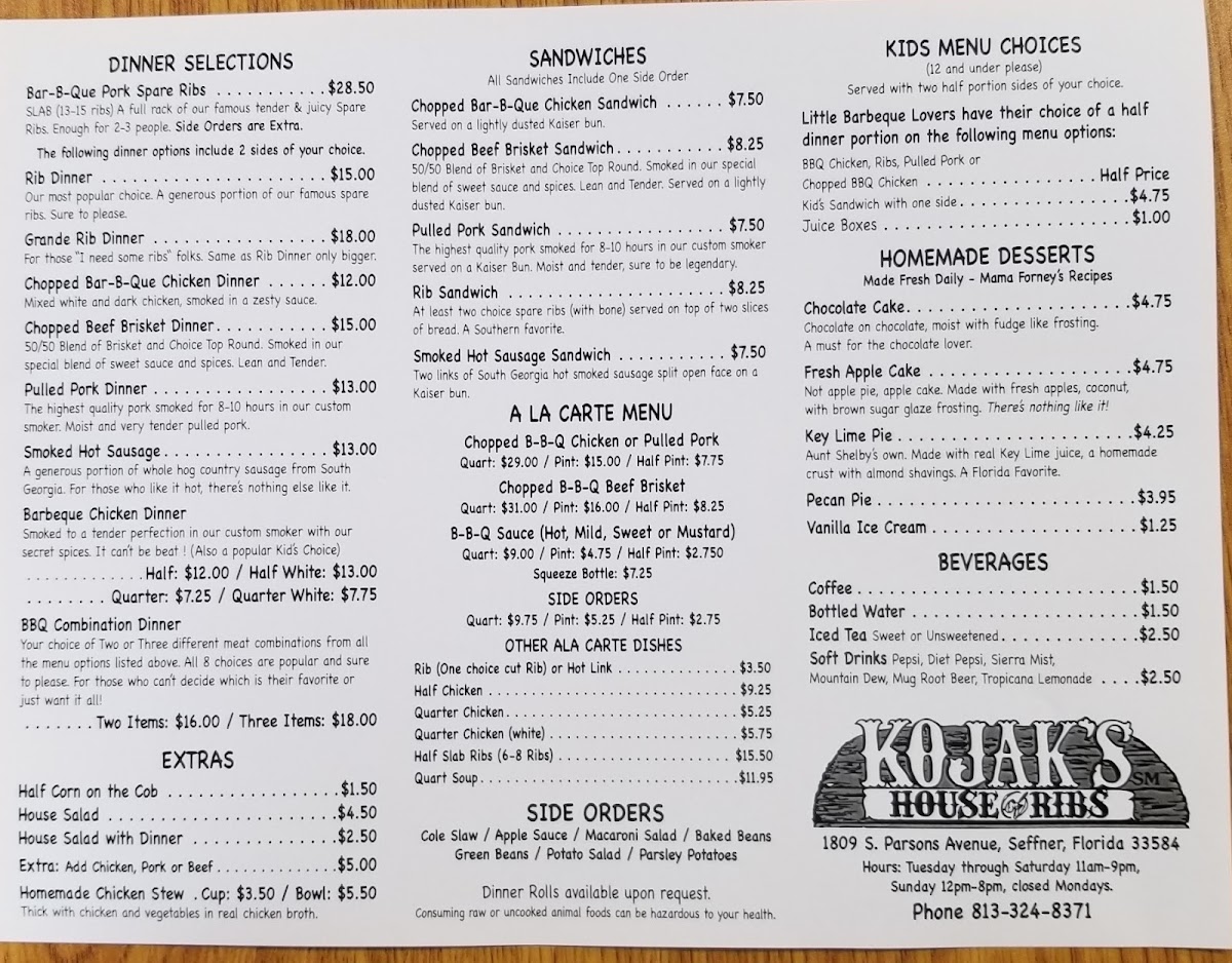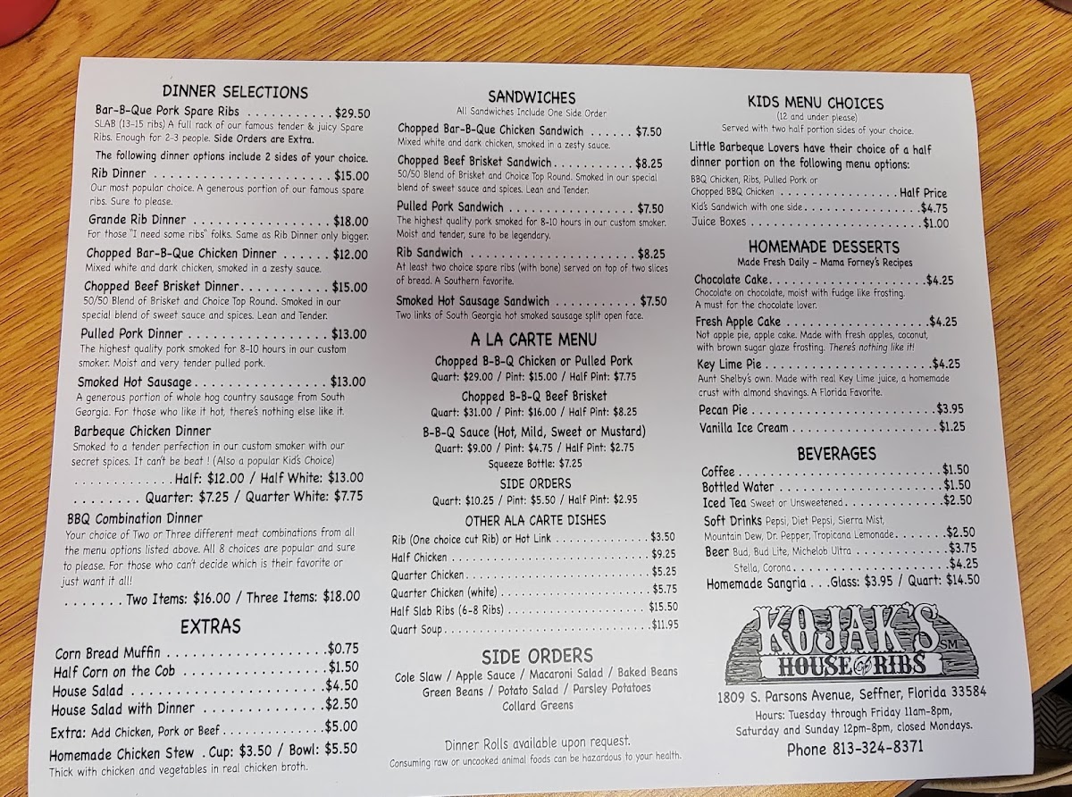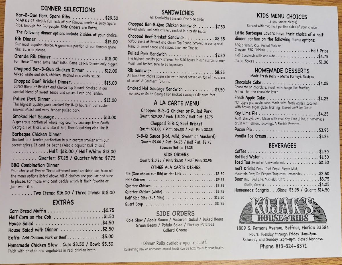 Smoked to a tender perfection in our custom smoker with our secret spices it can't be beat (also a popular kid's choice). Includes two sides of your choice.