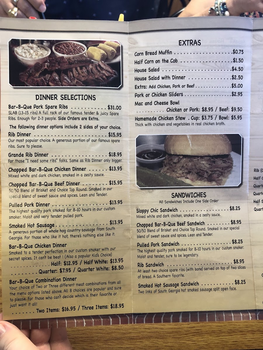 At least two choice spare ribs (with bone) served on top of two slices of bread, a southern favorite. Sandwiches include one side order.